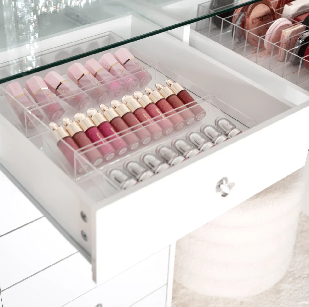 Avec ses tiroirs spacieux et ses finitions soignées, la Princess Génèva devient le centre de votre espace, reflétant votre goût pour le luxe et l'organisation. Son design intemporel et ses détails uniques, comme les vitrines transparentes des tiroirs supérieurs, ajoutent une touche de sophistication à votre pièce.